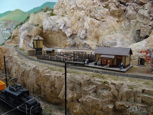| A passenger train passes through yard on its run. | While clear skies mean no immediate need for the Rotary, the weather will change and the battle against snow in the high country will begin | The drovers wait for the stock cars to be dropped off while a D&IM freight passes below. |