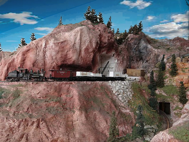 | The Zephyr arrives in Calamity. | Switching at Troublesome, Phantom Canyon's trestle in the background |